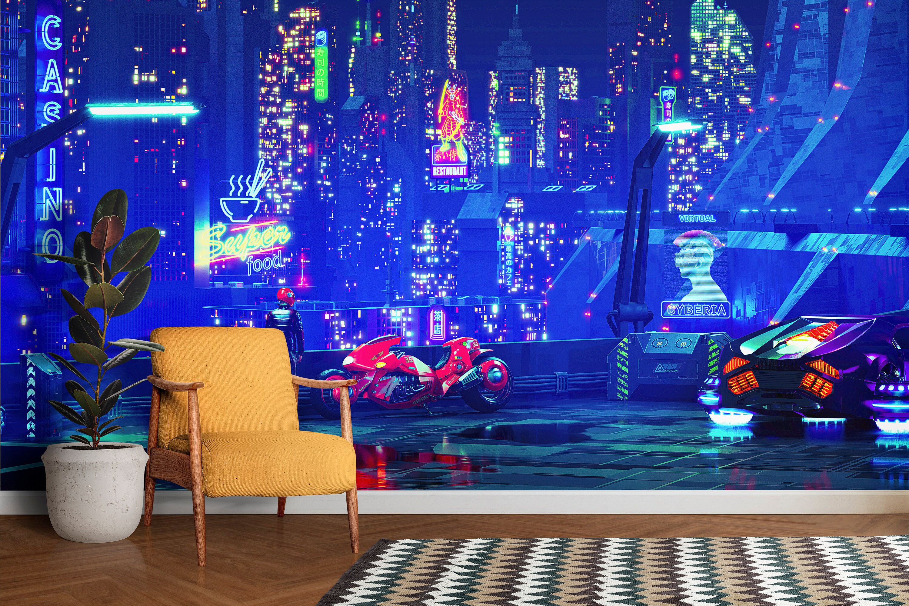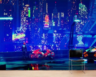 Cyberpunk Futuristic City Of Japan Wall Mural Peel And Stick Etsy Australia